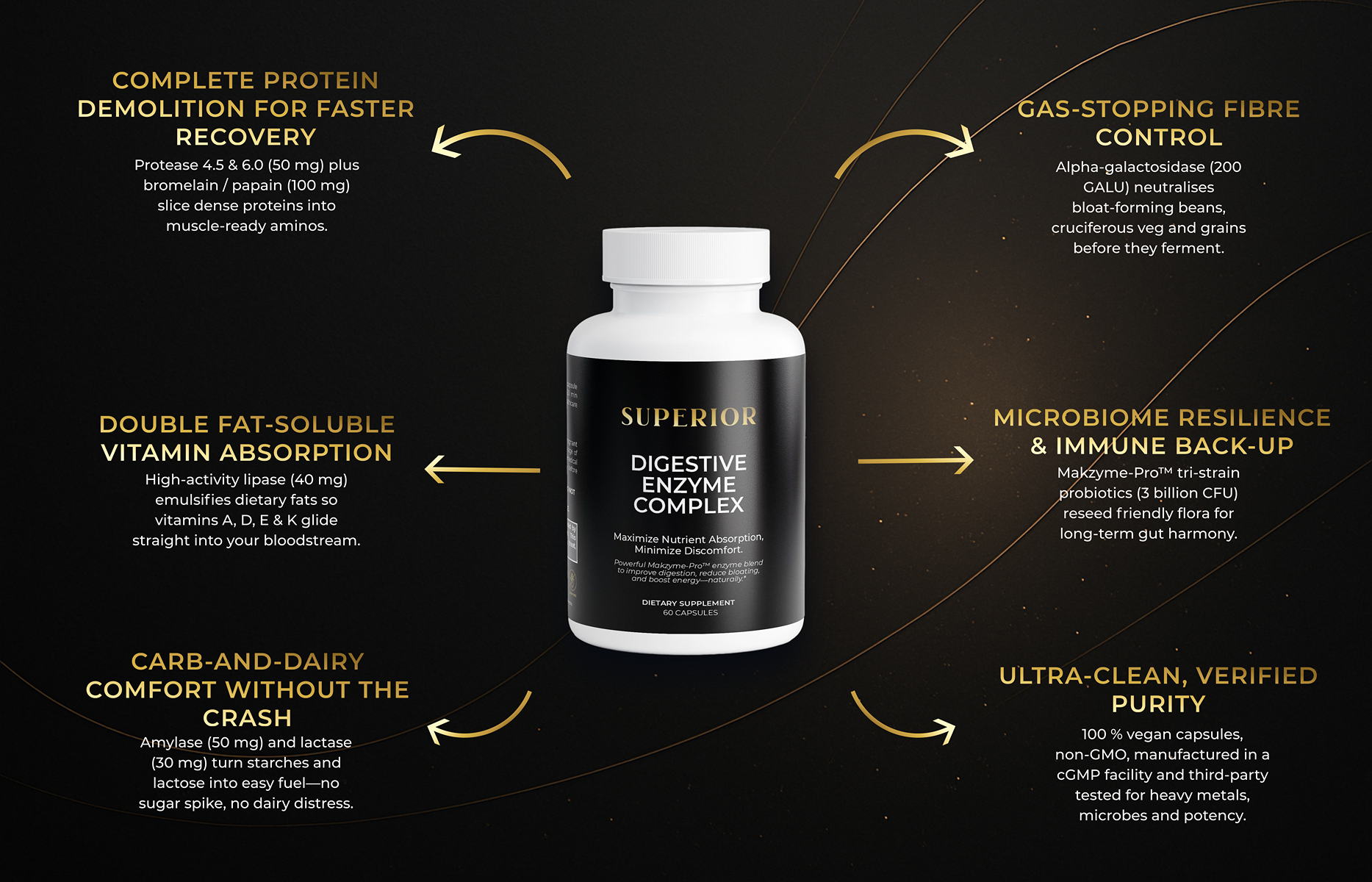 It’s not your willpower—it’s missing digestive fire. One capsule of SUPERIOR Digestive Enzyme Pro Blend™ unlocks every nutrient, flattens bloat, and keeps you sharp from first forkful to final rep.